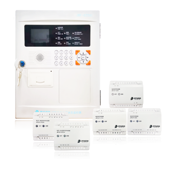 JBF-62S60型消防設(shè)備電源監(jiān)控系統(tǒng)由JBF-62S60型消防設(shè)備電源狀態(tài)監(jiān)控器、電壓/電流信號(hào)傳感器(JBF62P-ATV2A1、JBF62P-ATV1A1)、電壓信號(hào)傳感器(JBF62P-ATV2、JBF62P-ASV6、JBF62P-ASV1)組成。