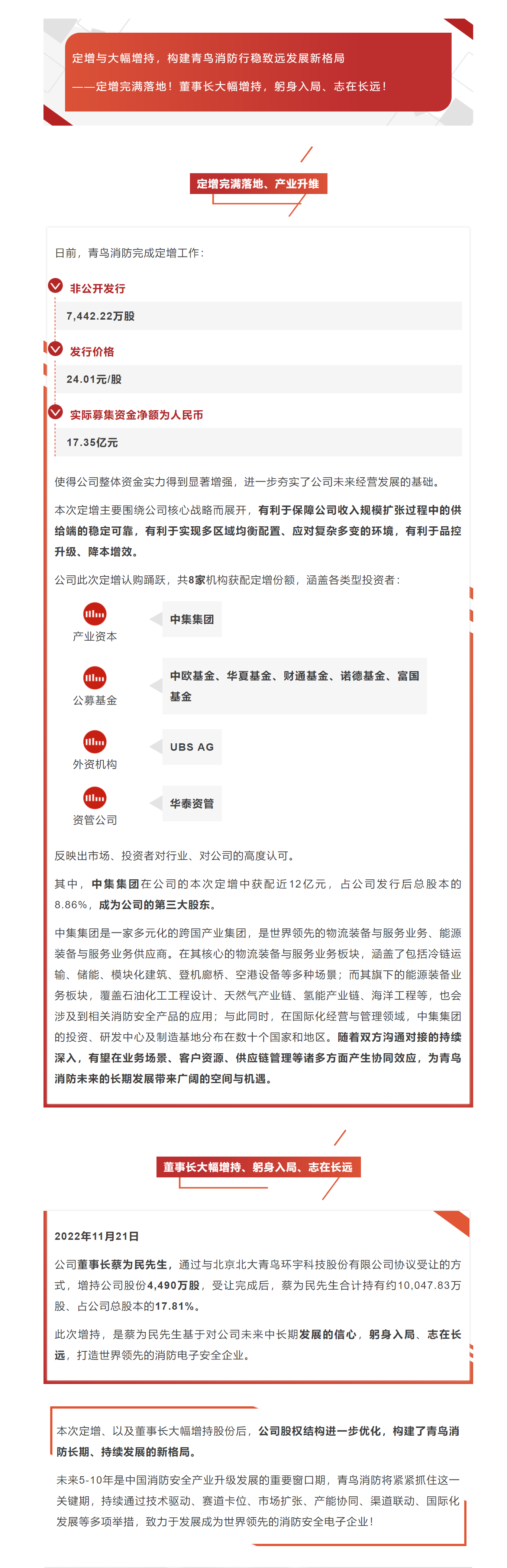 定增與大幅增持,構(gòu)建青鳥消防行穩(wěn)致遠(yuǎn)發(fā)展新格局——定增完滿落地!董事長(zhǎng)大幅增持,躬身入局、志在長(zhǎng)遠(yuǎn)!